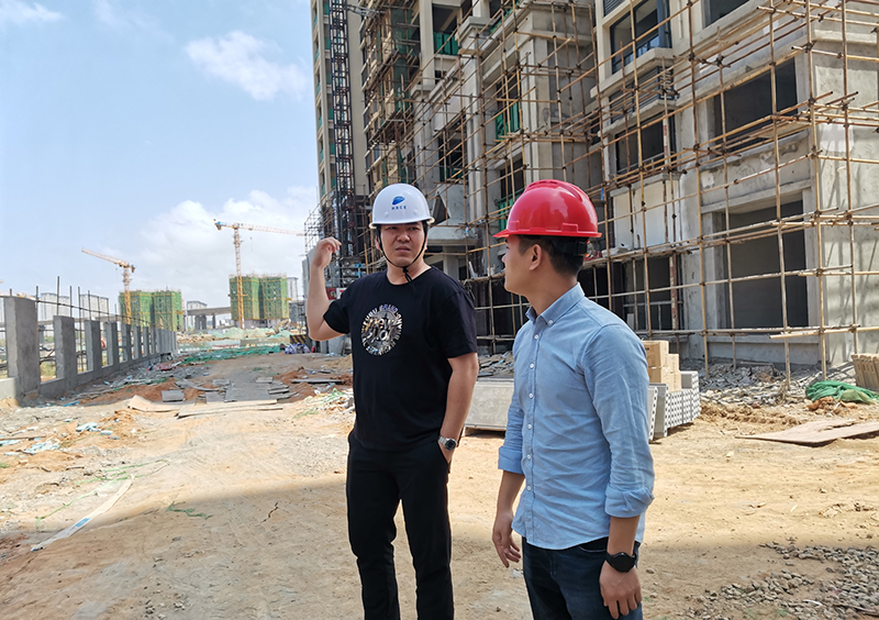 海玻建設總經理--孫瑋(左) 到幸福匯三期工地視察指導工作